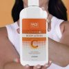 - Apply a generous amount of the Vitamin C Body Lotion to your body, focusing on areas that need extra hydration.