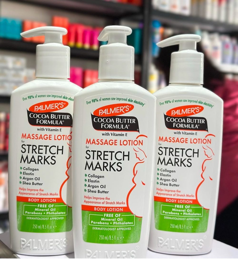 Pure cocoa butter and shea butter, natural oils, collagen, elastin, and lutein keep skin moisturized and supple for 48 hours, allowing skin to stretch more easily. Widely recommended for stretch marks during and after pregnancy or weight fluctuation.