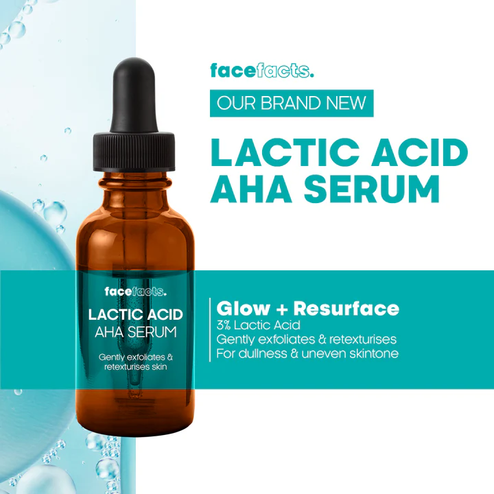 Face Fact Glow & Resurface Lactic Acid Facial Serum is a potent skincare solution designed to rejuvenate and revitalize the skin, leaving it with a radiant glow. Formulated with lactic acid, a gentle yet effective alpha hydroxy acid (AHA), this serum works to exfoliate the skin’s surface, promoting cell turnover and revealing smoother, more even-toned skin.
