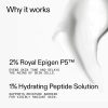 Why it works : 2% Royal Epigen P5™ helps to even skin tone and delay the aging of skin cells. 1% Hydrating Peptide Solution supports your skin’s moisture barrier for visibly radiant skin.